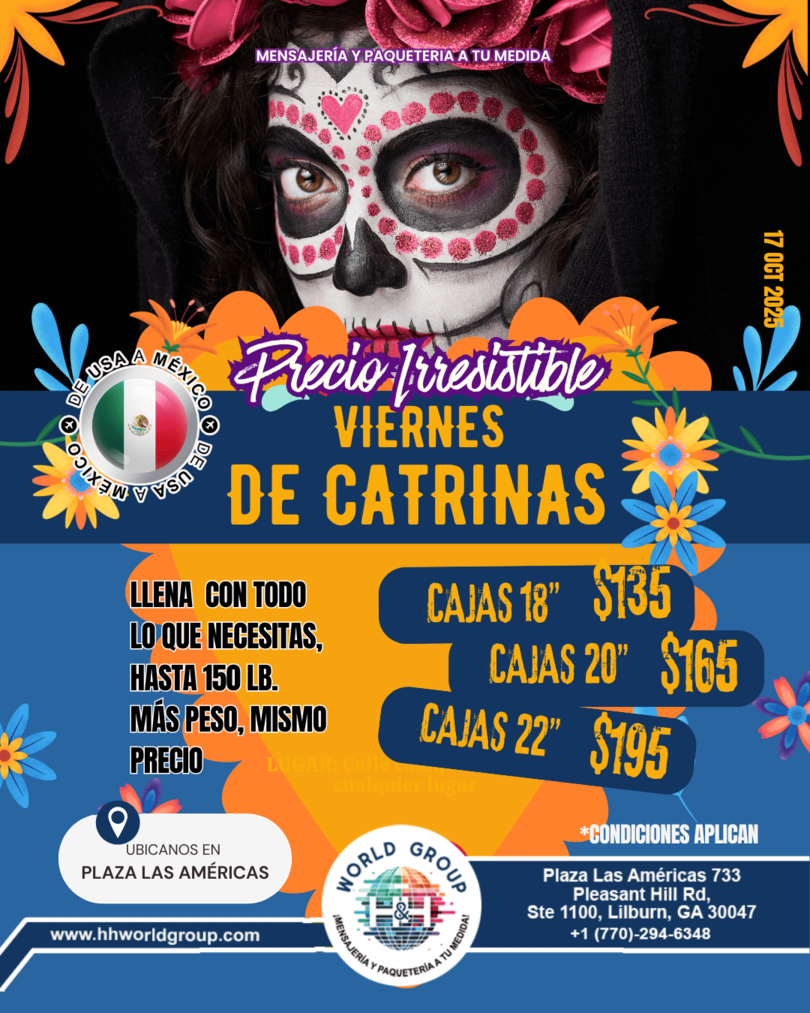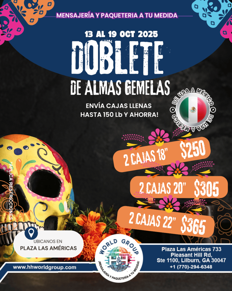 En H&H World Group, nos importa que puedas mantenerte conectado con tu familia y amigos, sin preocuparte por el costo. Por eso, ofrecemos promociones especiales para ayudarte a enviar tus paquetes a México, Honduras, Guatemala, El Salvador, Nicaragua, Venezuela, Colombia y Chile al mejor precio. No te pierdas nuestras ofertas, y envía con tranquilidad.